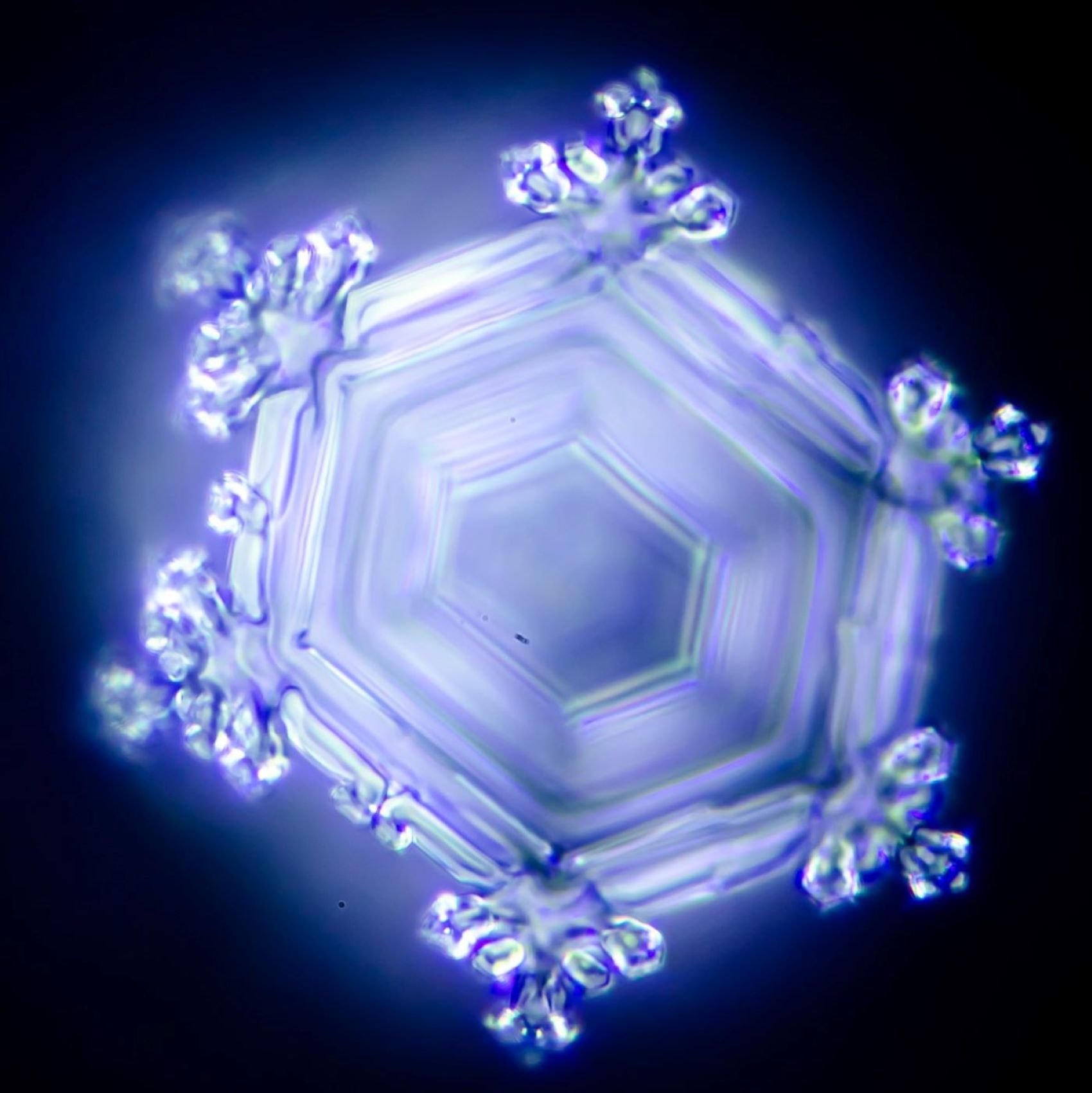 Einer der Indikatoren für eine harmonische Wasserstruktur sind die geometrischen sechseckigen Formen der gefrorenen Wasserkristalle mit dem maximalen Symmetrieindex. Ergebnisse von Studien zum Kristallperle-Effekt auf Wasserkristalle nach der Methode von Masaru Emoto